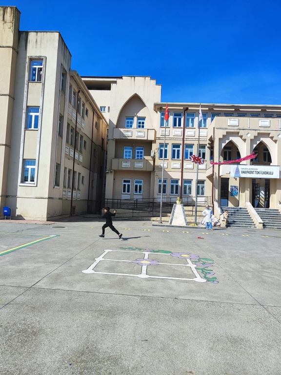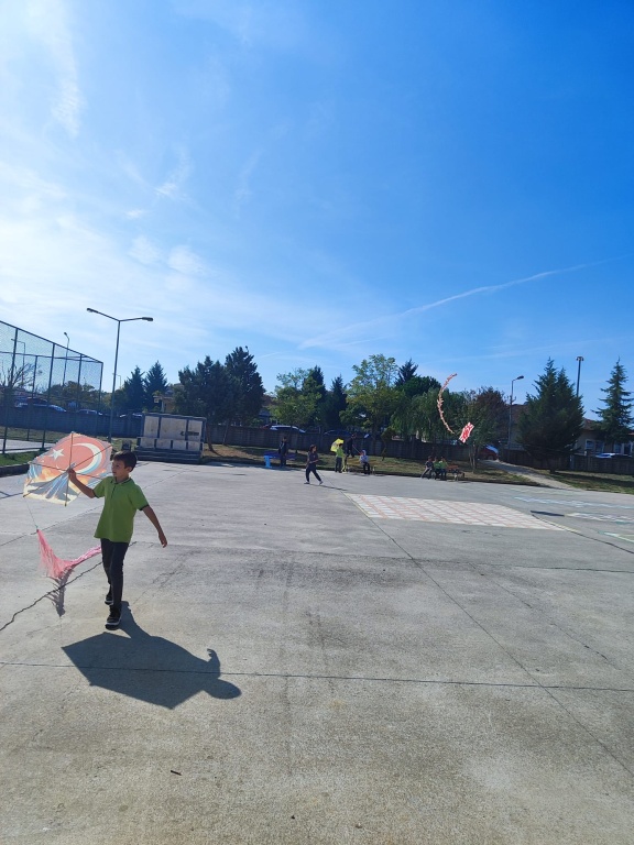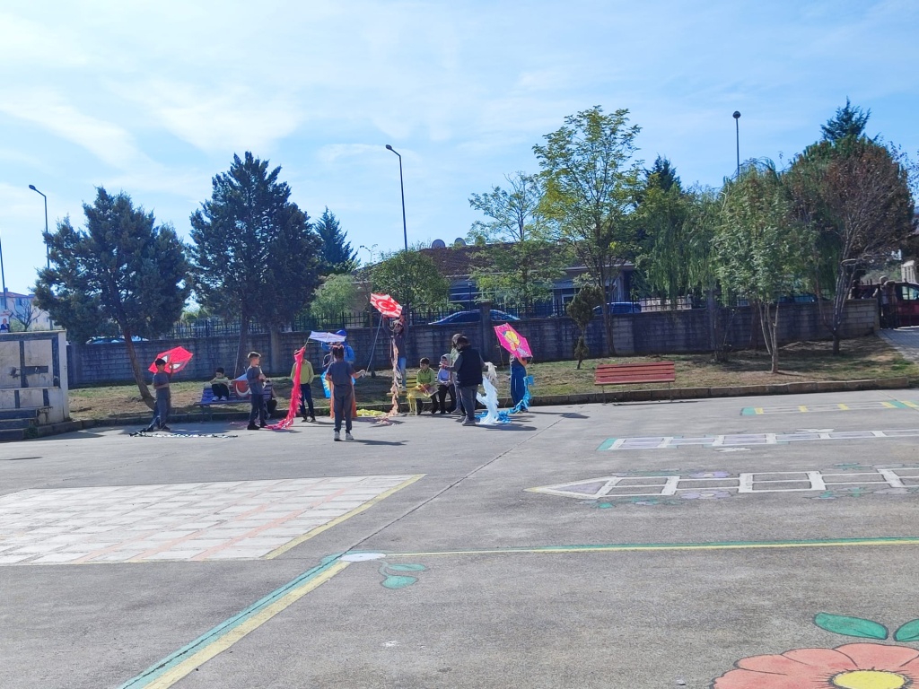 4 D sınıfı öğrencileri okul bahçesinde uçurtmalarını uçurdular.